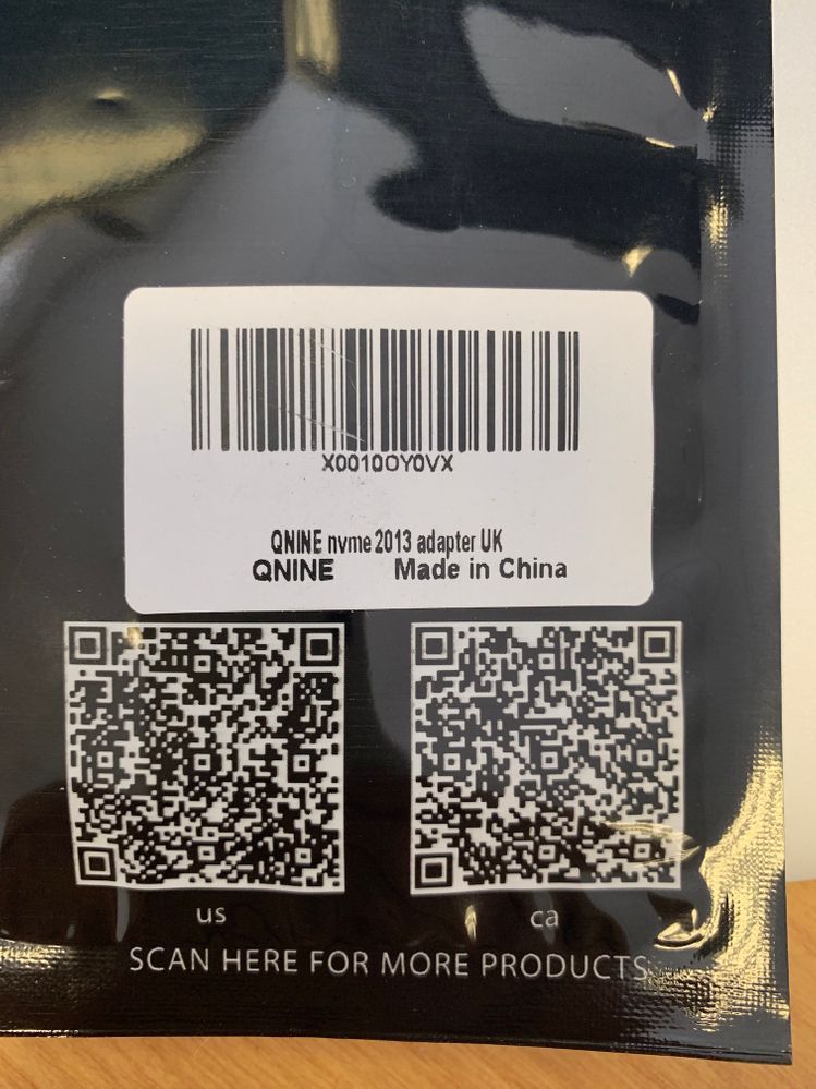 I purchased an Intel 660P 1TB SSD and the the Qnine adapter in order to install the SSD into my MacBook Air